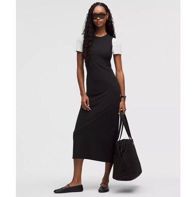 Hello, effortless. This slim-fit dress is made from buttery-soft ribbed fabric and has a back slit for ease of movement.